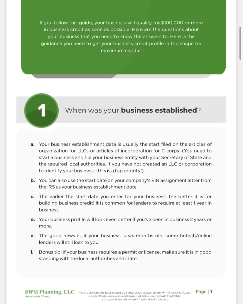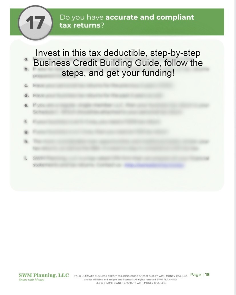 These pages and more will be unlocked after you invest in your business and yourself by purchasing this extremely valuable, cohesive business credit building guide from a top-qualified CPA!